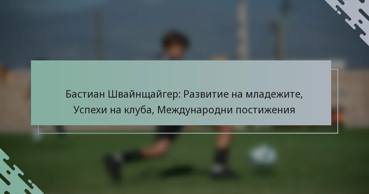 Развитието на Бастиан Швайнщайгер в младежките години беше оформено от влиянието на семейството, ранните клубни опити и ключови треньори, които положиха основите за успешната му футболна кариера. Неговото пътуване от местни младежки отбори до професионален футбол показва важността на менторството и развитието на умения в спорта.