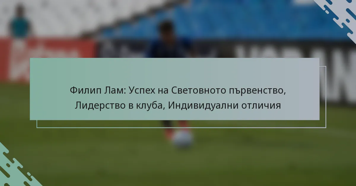 Филип Лам, почитан германски футболист, е получил множество индивидуални награди през кариерата си, подчертаващи изключителните му умения и приноси към спорта. Неговите отличия отразяват лидерството му на терена, техническите му способности и последователното му представяне както на клубно, така и на международно ниво.