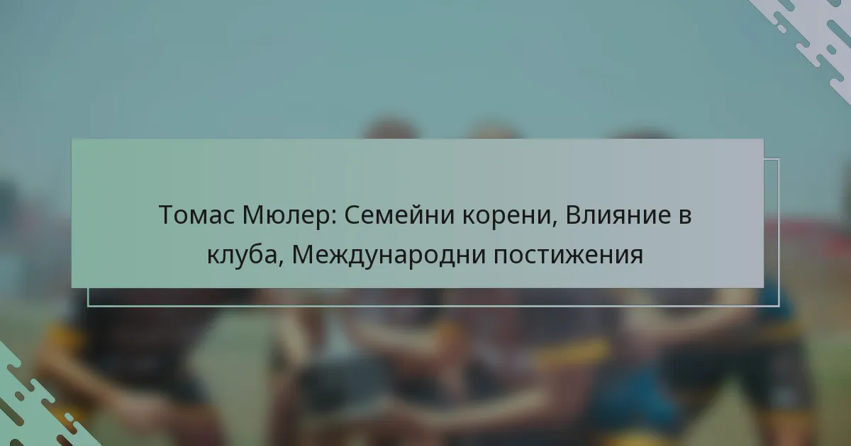 Томас Мюлер, родом от Вайлахайм, Германия, е изградил забележителна футболна кариера, оформена от подкрепящото му семейство и ранните влияния. Като ключов играч на Байерн Мюнхен, неговото изключително представяне и лидерство са оставили траен отпечатък върху културата на клуба. Освен това, приносите на Мюлер към германския национален отбор, подчертавани от участието му в големи турнири, подчертават значението му в международния футбол.